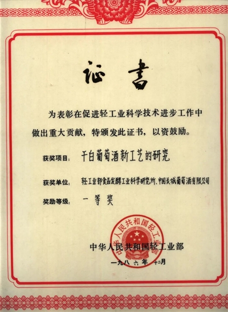 新中國葡萄酒產(chǎn)業(yè)奠基人郭其昌(圖左三),是新中國第一瓶干白、干紅葡萄酒研制者,輕工業(yè)部食品發(fā)酵工業(yè)科學(xué)研究所老專家。