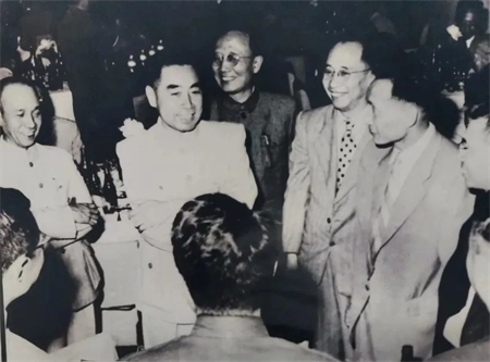 1956年,周恩來總理在中南海懷仁堂親切接見秦含章(圖右三)等科學(xué)家。秦含章是中國食品工業(yè)奠基人、酒界泰斗,1960-1967年、1978-1984年任輕工業(yè)部食品發(fā)酵工業(yè)科學(xué)研究所(中國食品發(fā)酵工業(yè)研究院前身)所長。