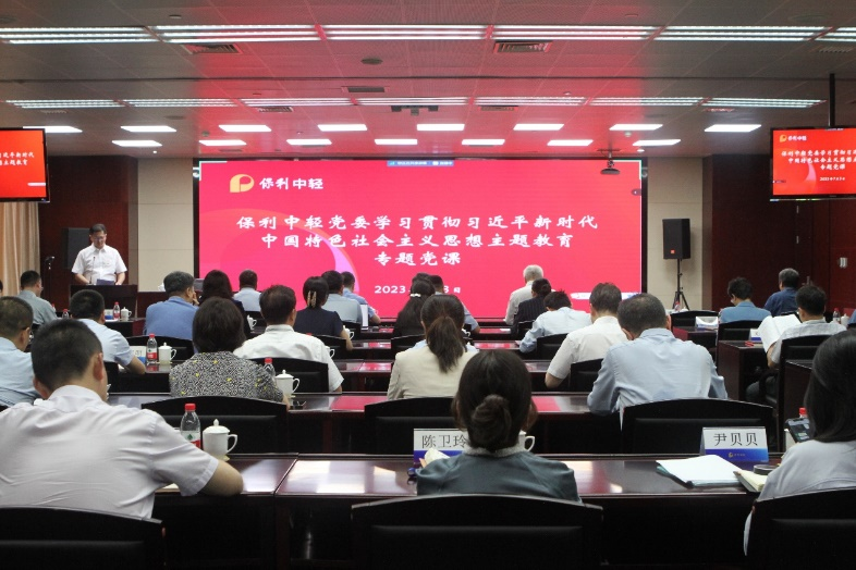 保利中輕領導班子成員、總經(jīng)理助理、部門負責人、主任助理,各級企業(yè)領導班子成員、部門負責人及全體黨員干部職工分別以現(xiàn)場和視頻形式聆聽黨課。