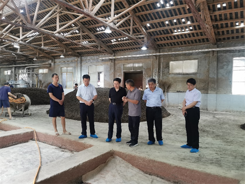 調(diào)研期間,王珂靈一行參觀了釀酒車間、制曲車間、酒庫等。