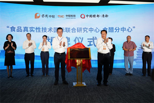 在與會領導和嘉賓共同見證下,太原市人大常委會副主任、清徐縣委書記王劍峰與中輕檢驗總經理趙紅峰共同為“食品真實性(FA)技術國際聯(lián)合研究中心——食醋分中心”揭牌。