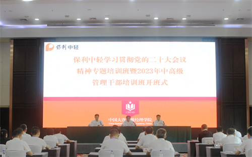 8月28日至9月1日,保利中輕在中國(guó)大連高級(jí)經(jīng)理學(xué)院北京教研中心舉辦學(xué)習(xí)貫徹黨的二十大會(huì)議精神專題培訓(xùn)班暨2023年中高級(jí)管理干部秋季培訓(xùn)班。保利中輕總部主任助理以上干部、子公司總經(jīng)理助理以上領(lǐng)導(dǎo)干部、海誠(chéng)股份下屬子公司主要領(lǐng)導(dǎo)參加開(kāi)班儀式。