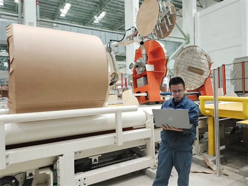 在馬來西亞玖龍項(xiàng)目的紙卷輸送包裝車間,一位工作人員正在通過電腦連接生產(chǎn)線進(jìn)行調(diào)試。他注意力高度集中,根據(jù)紙卷包裝運(yùn)行狀態(tài)有條不紊地調(diào)整著各項(xiàng)參數(shù),很快地,一個個紙卷像聽懂了他的命令一般,整齊有序地依次排隊(duì)入庫……