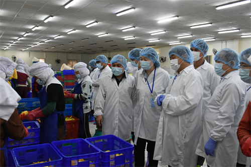 此外,曹春昱一行還赴金邊本地Kirirom食品加工廠和KHMER BEVERAGES啤酒公司進行調(diào)研考察,參觀了芒果干生產(chǎn)車間、啤酒生產(chǎn)線及檢測實驗室,與企業(yè)相關負責人進行深入交流。雙方就芒果制品深加工,特別是在芒果飲料、芒果酵素等新產(chǎn)品開發(fā)和技術交流方面合作,達成初步合作意向。
