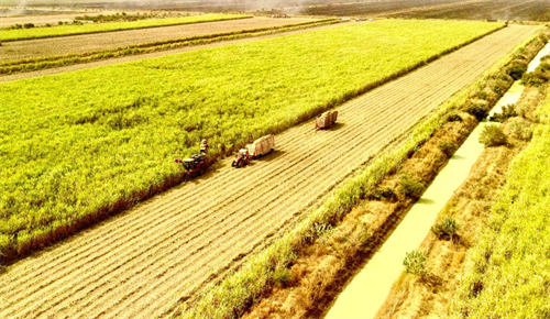 “靠天吃飯不如靠技要產(chǎn)”。馬里位于撒哈拉沙漠南緣,熱季酷熱干燥,最高氣溫可達50℃;雨季多陣發(fā)性狂風(fēng)暴雨,惡劣的天氣會對甘蔗的生長產(chǎn)生不良影響。為改變農(nóng)業(yè)靠天吃飯的被動局面,大力提升甘蔗產(chǎn)量和產(chǎn)糖率,鄭怡寧不斷攻堅克難、精益創(chuàng)新,積極探索農(nóng)業(yè)機械化、信息化、現(xiàn)代化發(fā)展之路。通過投入7臺甘蔗聯(lián)合收割機,自改12臺破壟施肥培土一體機,實現(xiàn)100%地塊中耕、施肥、培土機械化標準作業(yè);通過智慧化農(nóng)業(yè)生產(chǎn)平臺遙感技術(shù)智能化定期監(jiān)測甘蔗長勢,打造智慧化農(nóng)業(yè);在土地整治作業(yè)中啟用激光平地機和驅(qū)動耙,土地平整度得到明顯提升;將壓榨驅(qū)動汽輪機更換為變頻電機,壓榨車間引入均衡進榨系統(tǒng),實現(xiàn)榨量自動控制,保證工廠平穩(wěn)生產(chǎn)。