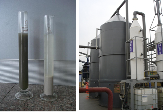 該成果中對回收硫化物和蛋白質的設備進行了創(chuàng)新設計和制造,使其具備了良好的密閉性,有效解決了反應釜處理量小、造價高、反應釜與攪拌槳之間密封性不好、硫化氫殘留危害操作人員、硫化氫無法全部轉化吸收等難題?;谏鲜鲈O備開發(fā)了浸灰廢液氨氮脫除技術,該技術是在回收硫化鈉和蛋白質之前,先對浸灰廢液進行吹脫處理。